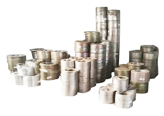 纏繞墊片是指用金屬帶(一般是v型鋼帶)與非金屬帶纏繞成環形的墊片,金屬帶與非金屬帶交替纏繞,由于其具有較好的彈性,廣泛用于石化、化工、電力等行業的法蘭密封結構中,根據具體部位,可在墊片的內層或外層加上鋼環來定位或加強。